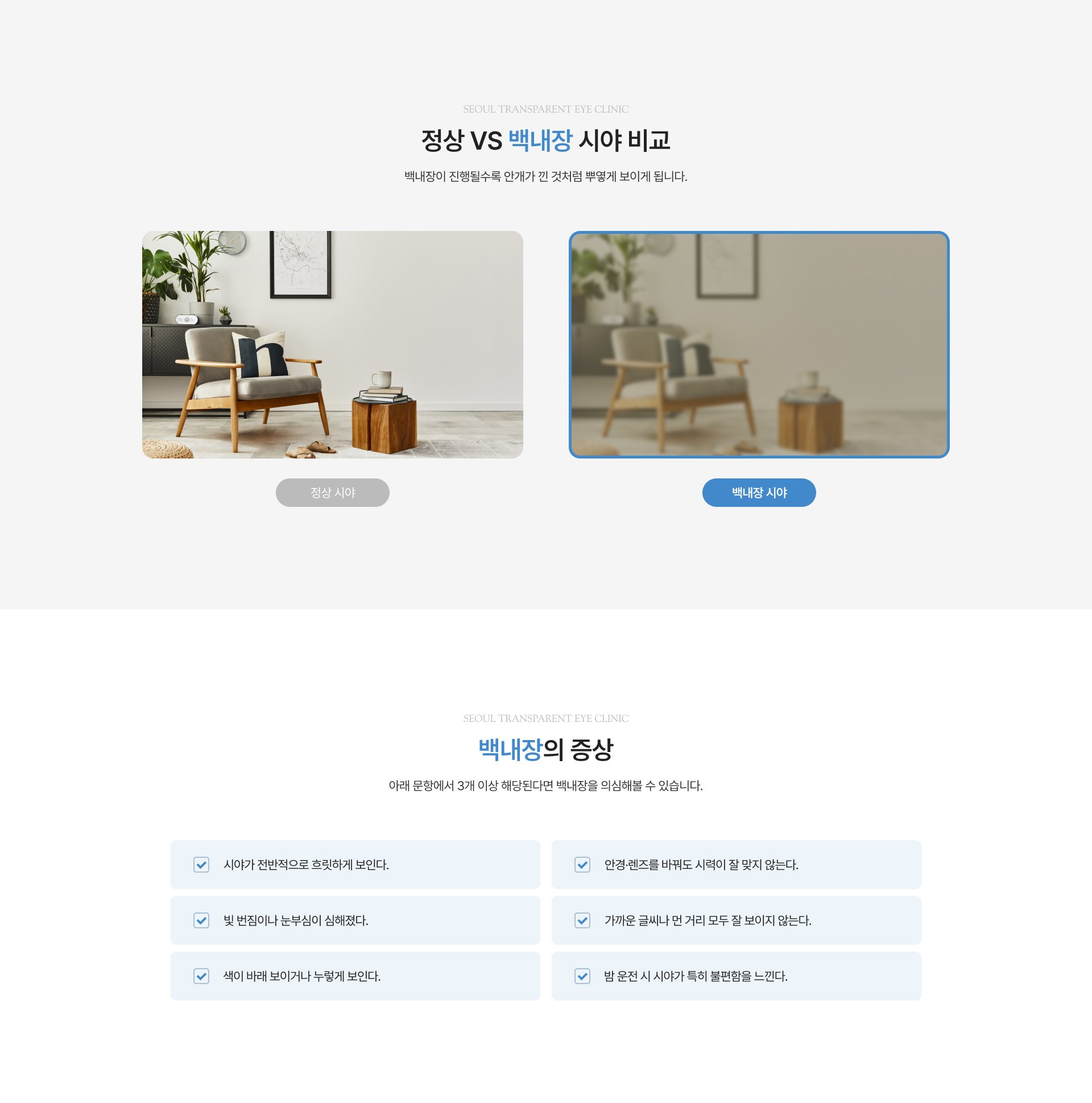 방치할 경우 시야가 점차 흐려지고 빛 번짐과 시력 저하가 심해져 근거리와