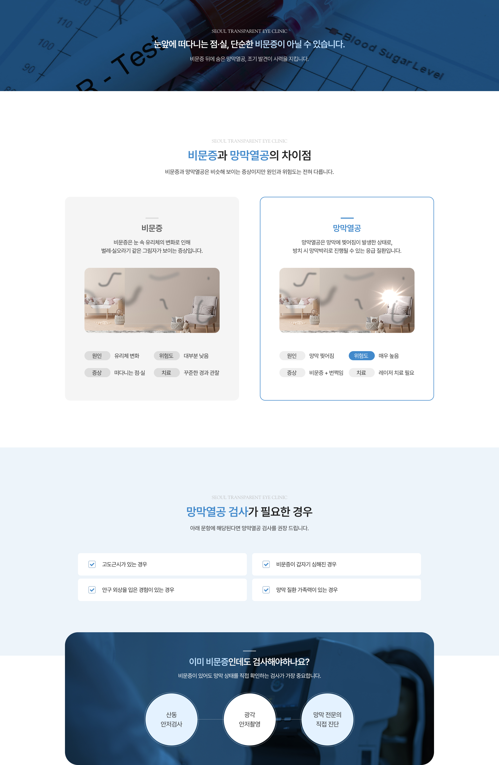 방치 시 망막박리로 진행될 수 있는 응급 질환입니다.
