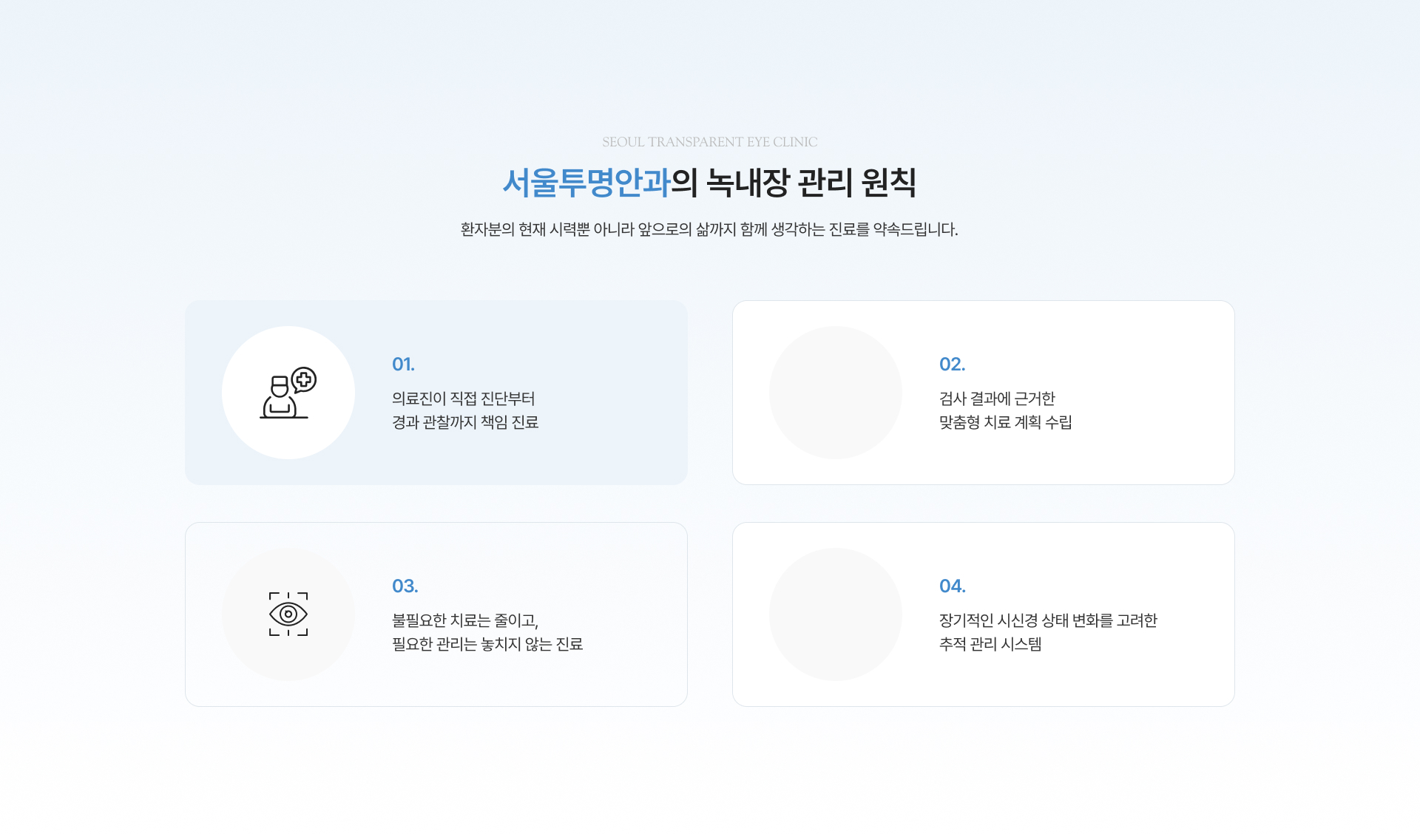 정확한 진단과 체계적인 관리로 소중한 시신경을 지켜드립니다.